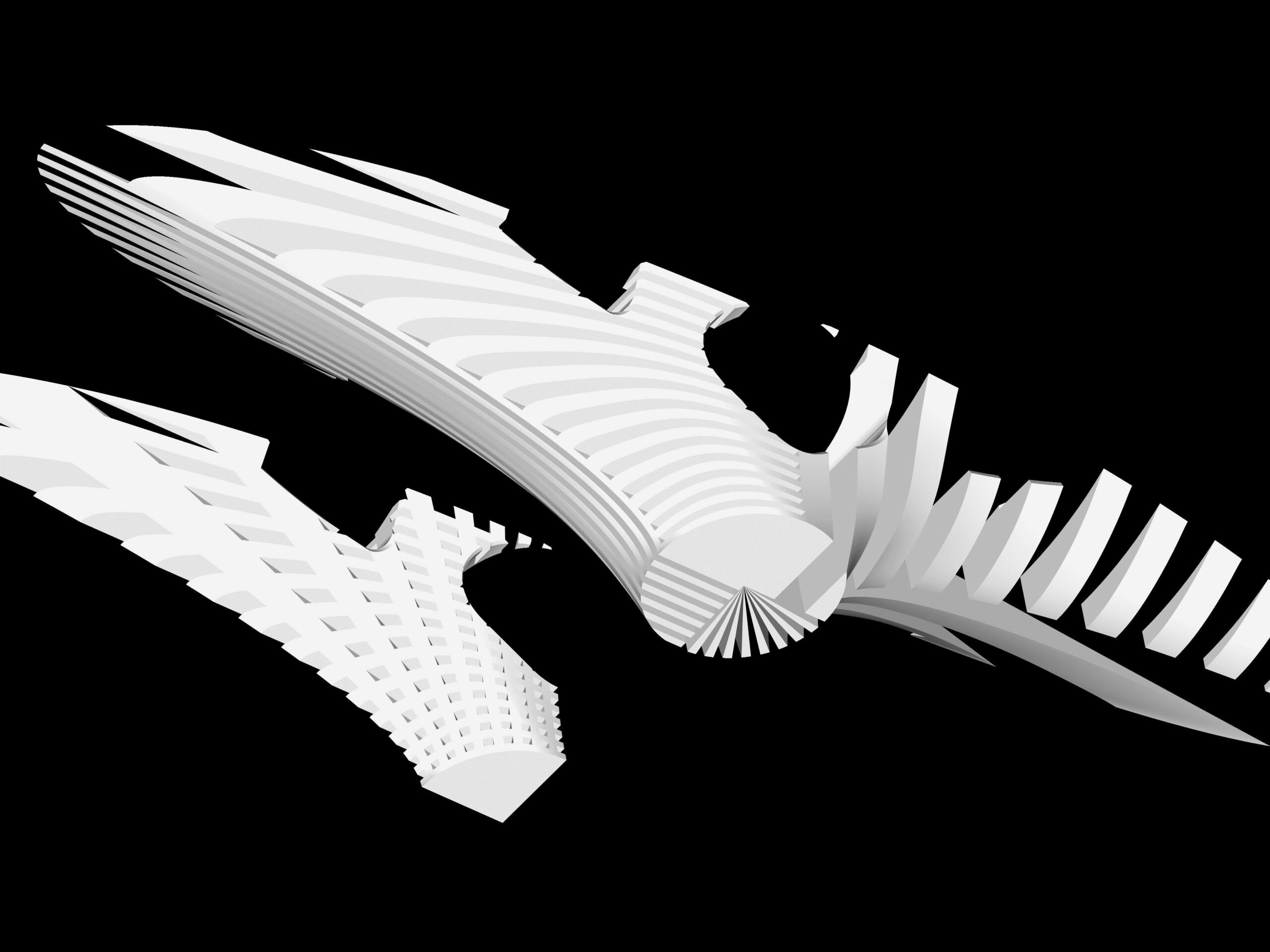 La forme de la structure, inspirée de la légende de la grue jaune, est obtenue par déformation virtuelle d'une grille de poutres. Cette méthode a permis de tracer des surfaces naturelles optimales en fonction des points d'appui. L'utilisation des mathématiques pour construire la géometrie de la toiture a ensuite permis de stabiliser sa forme. Les équations, culture commune entre ingénieurs chinois et européens, permettent d'écrire des algorithmes pour la modélisation, pour le traçage des pièces et pour l'analyse géométrique de certains détails (distorion des panneaux, variations angulaires, etc ..).
