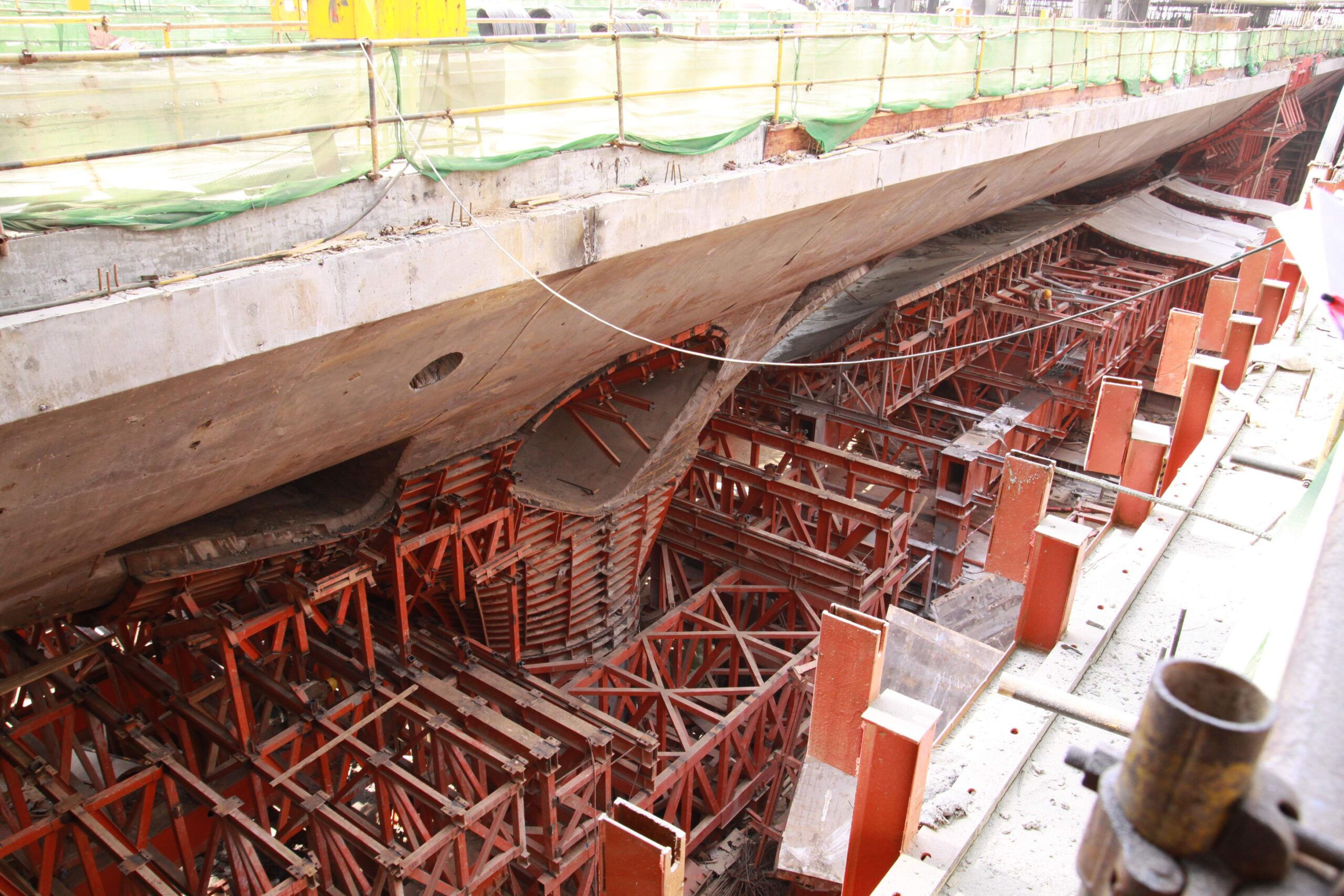 Les 100 ponts de la gare de Wuhan sont des travées isostatiques précontraintes de 36 m de portée permettant une meilleure isolation du bâtiment vis-à-vis des vibrations des trains. En partie centrale, des arches de 48 m franchissent le tunnel souterrain du metro.